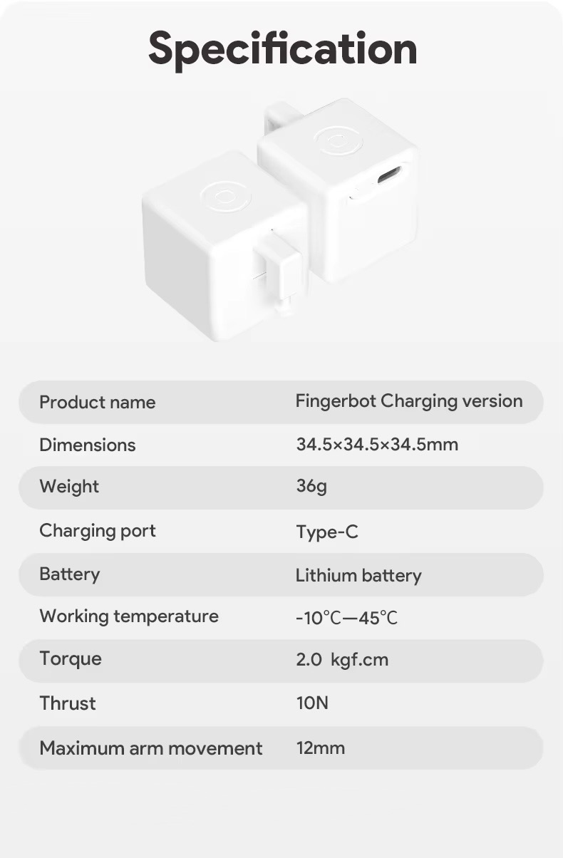 - Model Number: Type-C Rechargeable Fingerbot